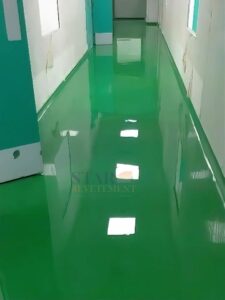 Le revêtement autolissant est un système de sol à base de résine (époxy, polyuréthane ou polyaspartique) spécialement conçu pour s’étaler et se niveler de manière autonome après application. Cette propriété permet d’obtenir une surface parfaitement plane, continue et homogène, sans joint ni défaut visible, idéale pour des environnements exigeant hygiène, durabilité et esthétisme.