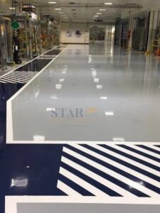 Le traçage en résine époxy est une technique utilisée pour appliquer des lignes, pictogrammes ou marquages au sol à l’aide d’une résine époxy bi-composante, offrant une grande résistance à l’usure, aux produits chimiques et aux passages fréquents. Il est couramment utilisé dans les usines, parkings, entrepôts, zones de stockage et voies de circulation pour assurer la sécurité, l’organisation et la visibilité des espaces.